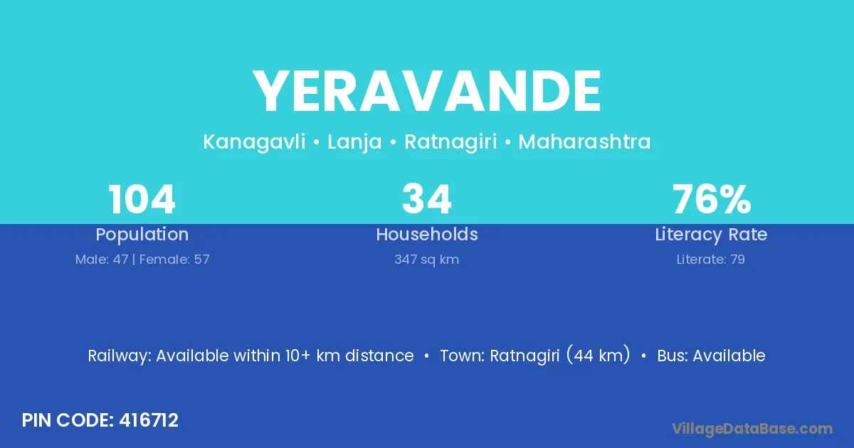 Ratnagiri (44 km) is the nearest town to Yeravande village for major economic activities and is located approximately 44 km away.