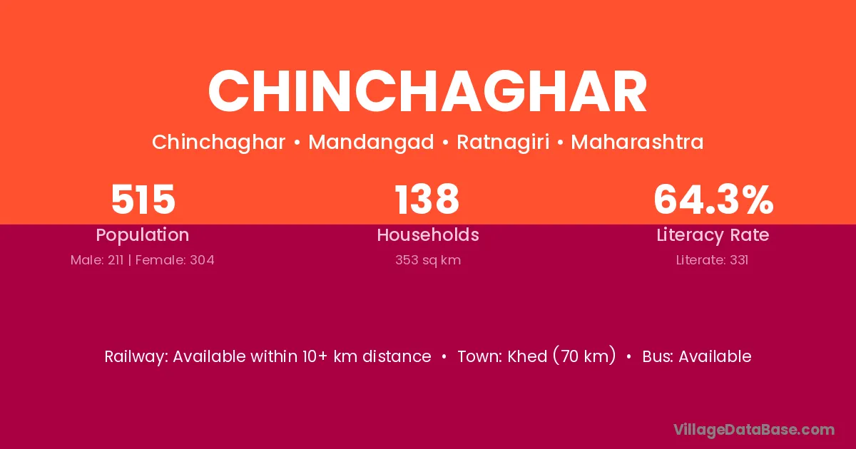 Khed (70 km) is the nearest town to Chinchaghar village for major economic activities and is located approximately 70 km away.