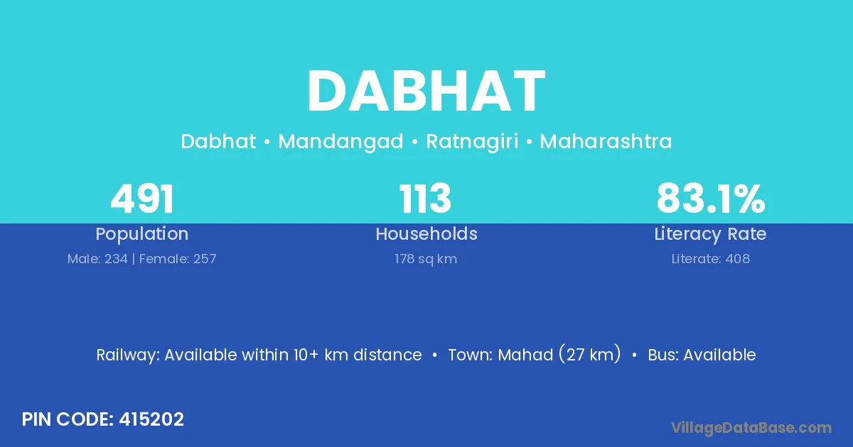 Mahad (27 km) is the nearest town to Dabhat village for major economic activities and is located approximately 27 km away.