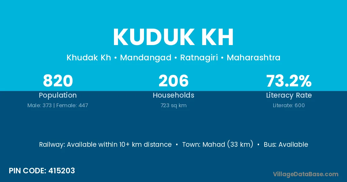 Mahad (33 km) is the nearest town to Kuduk Kh village for major economic activities and is located approximately 33 km away.