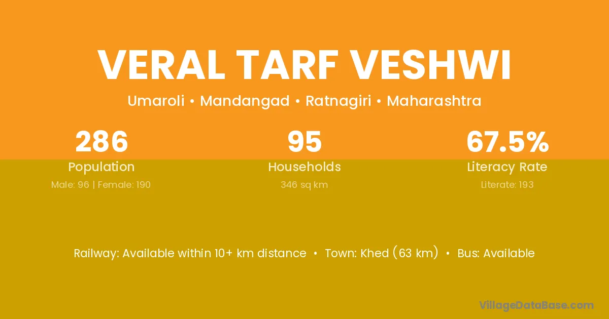 Khed (63 km) is the nearest town to Veral Tarf Veshwi village for major economic activities and is located approximately 63 km away.