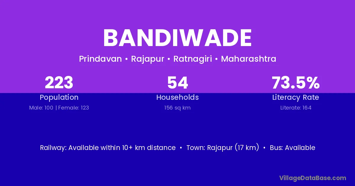 Bandiwade village has a total population of 223 people, of which 100 are males and 123 are females.