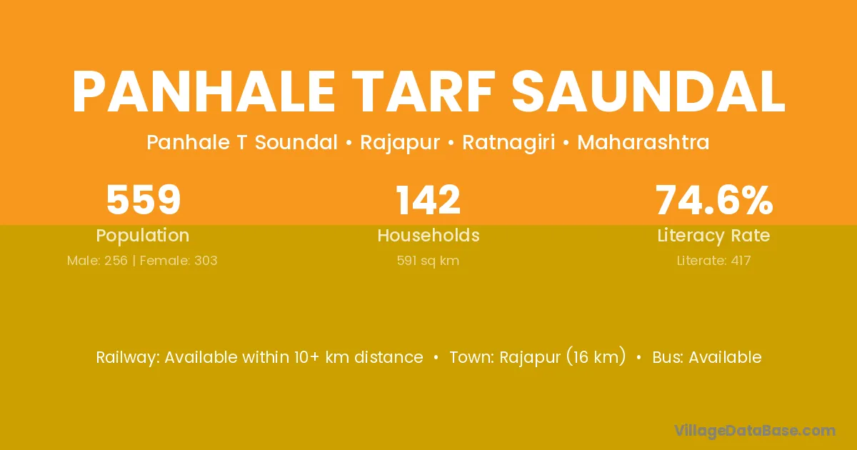 Panhale Tarf Saundal village has a total population of 559 people, of which 256 are males and 303 are females.