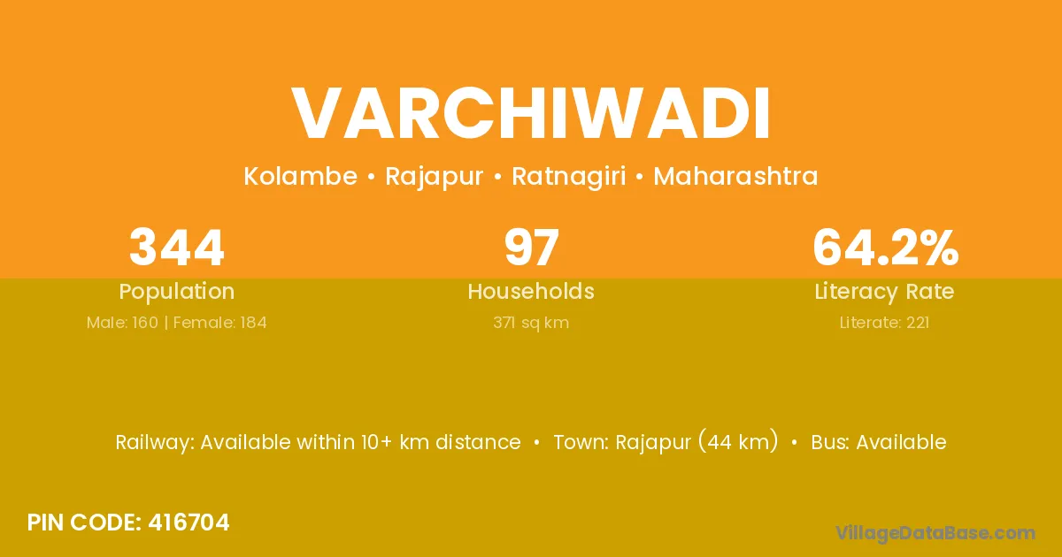 Rajapur (44 km) is the nearest town to Varchiwadi village for major economic activities and is located approximately 44 km away.