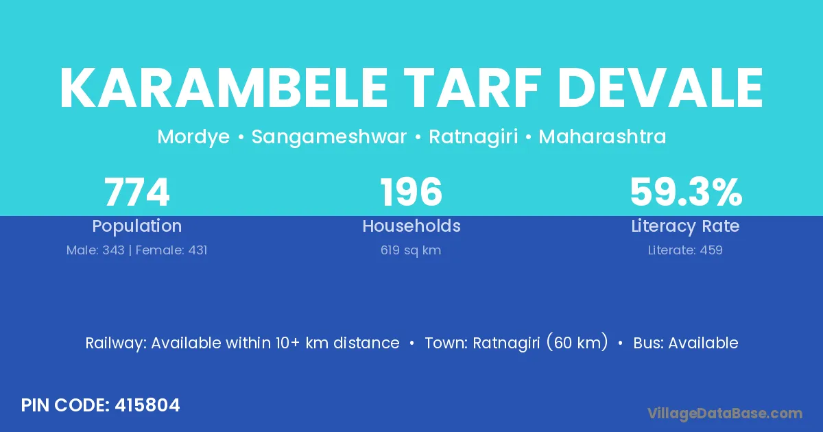 Ratnagiri (60 km) is the nearest town to Karambele Tarf Devale village for major economic activities and is located approximately 60 km away.