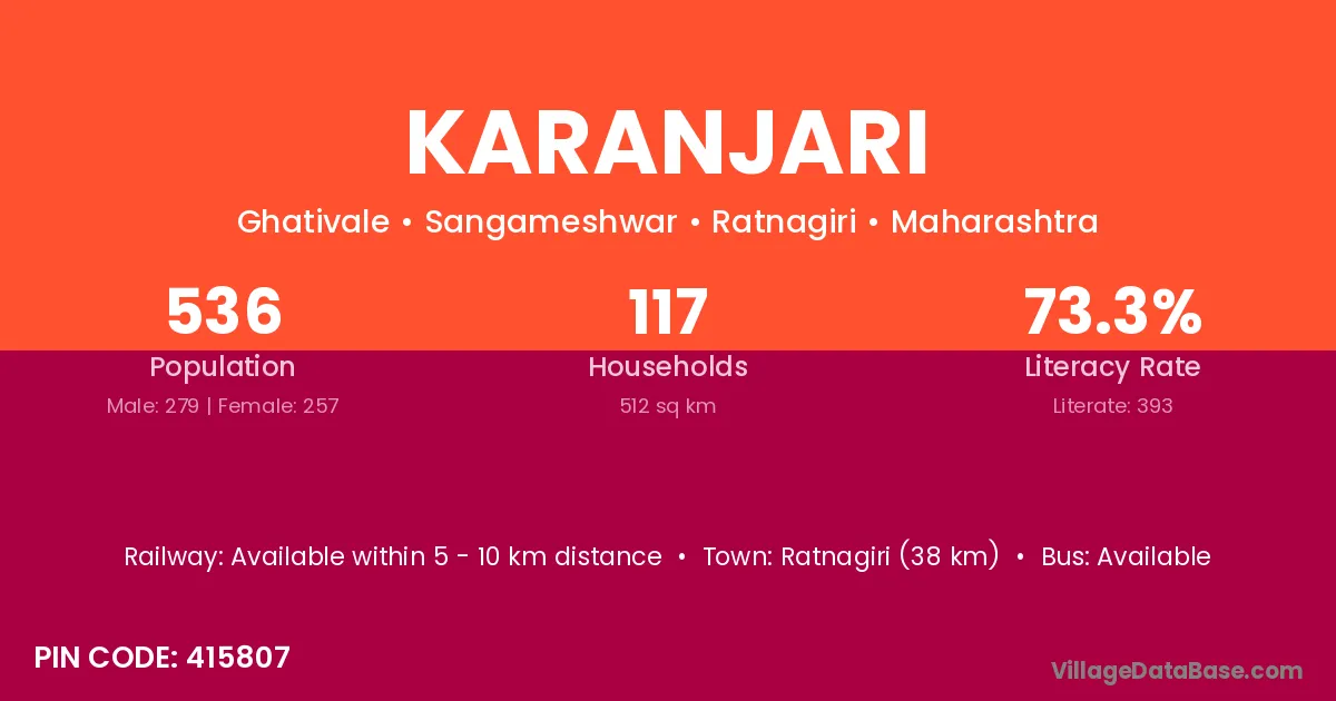 Ratnagiri (38 km) is the nearest town to Karanjari village for major economic activities and is located approximately 38 km away.