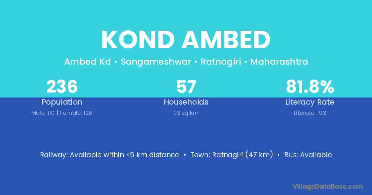 Ratnagiri (47 km) is the nearest town to Kond Ambed village for major economic activities and is located approximately 47 km away.