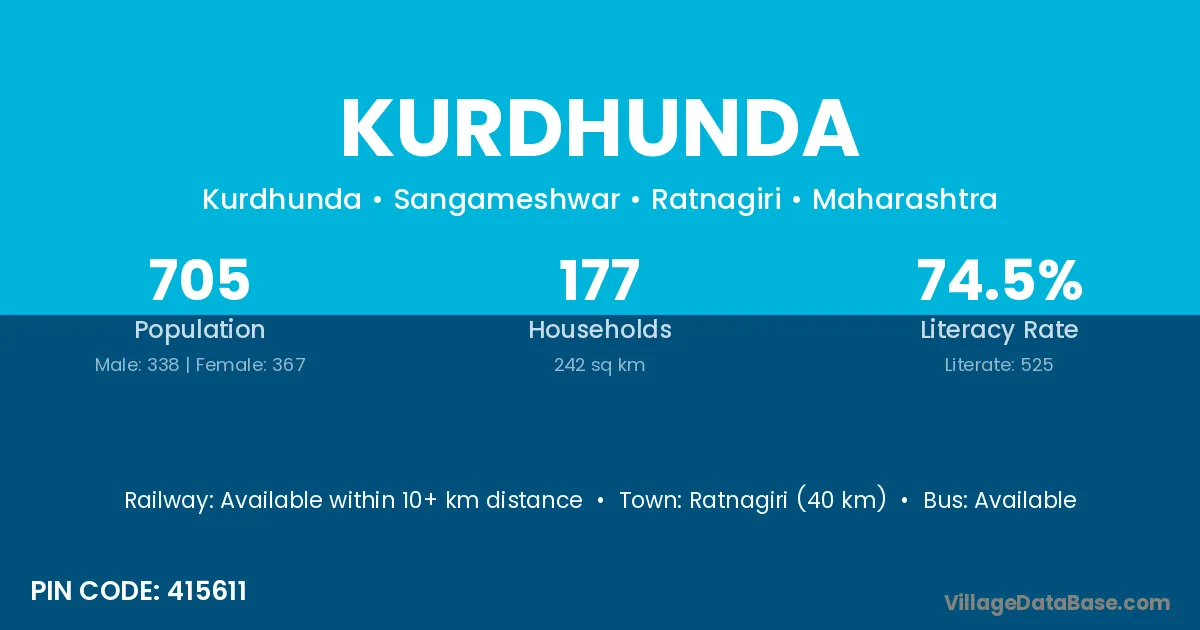 Ratnagiri (40 km) is the nearest town to Kurdhunda village for major economic activities and is located approximately 40 km away.