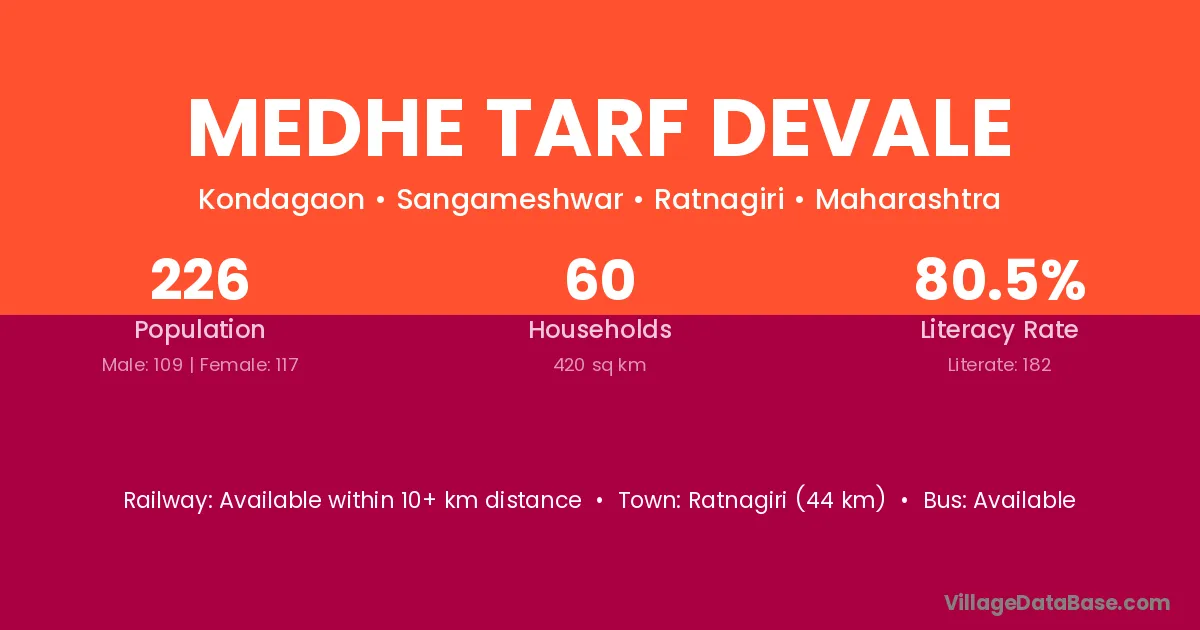 Medhe Tarf Devale village has a total population of 226 people, of which 109 are males and 117 are females.