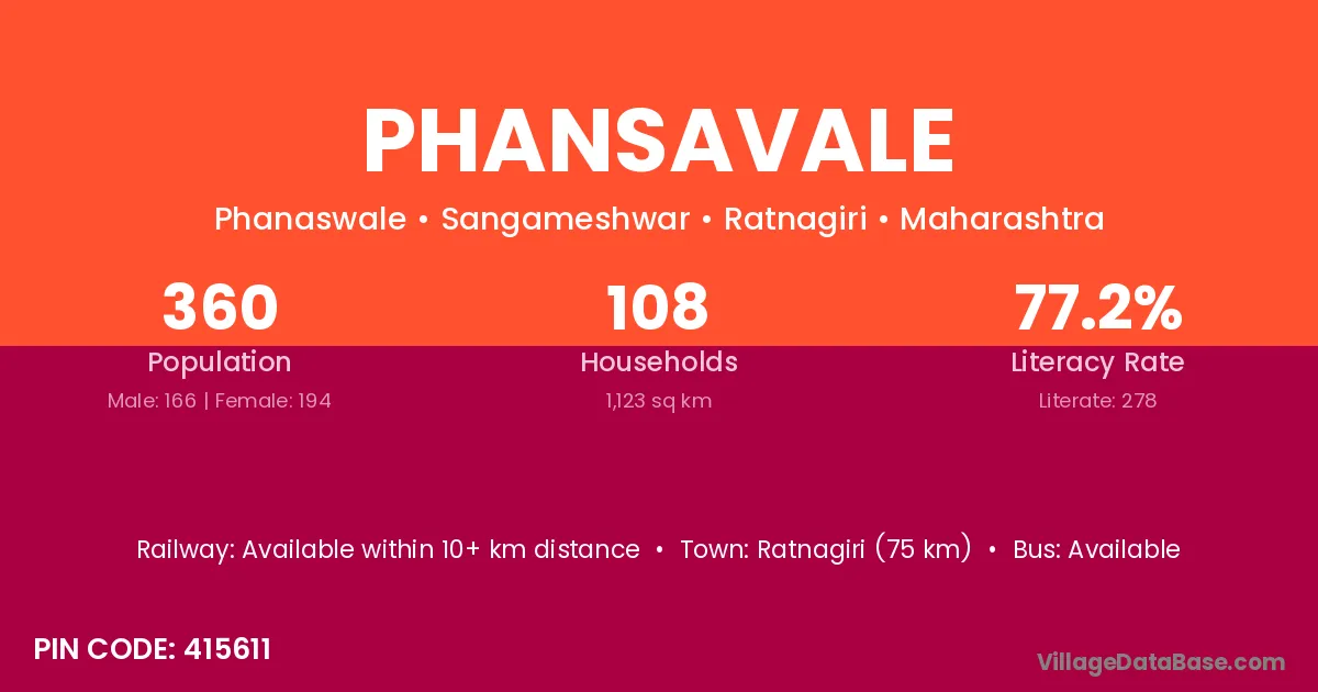 Ratnagiri (75 km) is the nearest town to Phansavale village for major economic activities and is located approximately 75 km away.