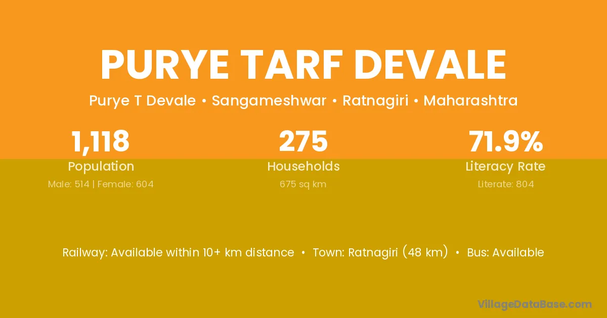 Ratnagiri (48 km) is the nearest town to Purye Tarf Devale village for major economic activities and is located approximately 48 km away.