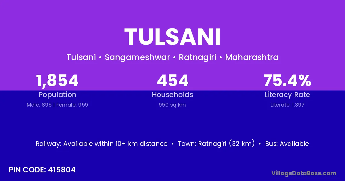Ratnagiri (32 km) is the nearest town to Tulsani village for major economic activities and is located approximately 32 km away.