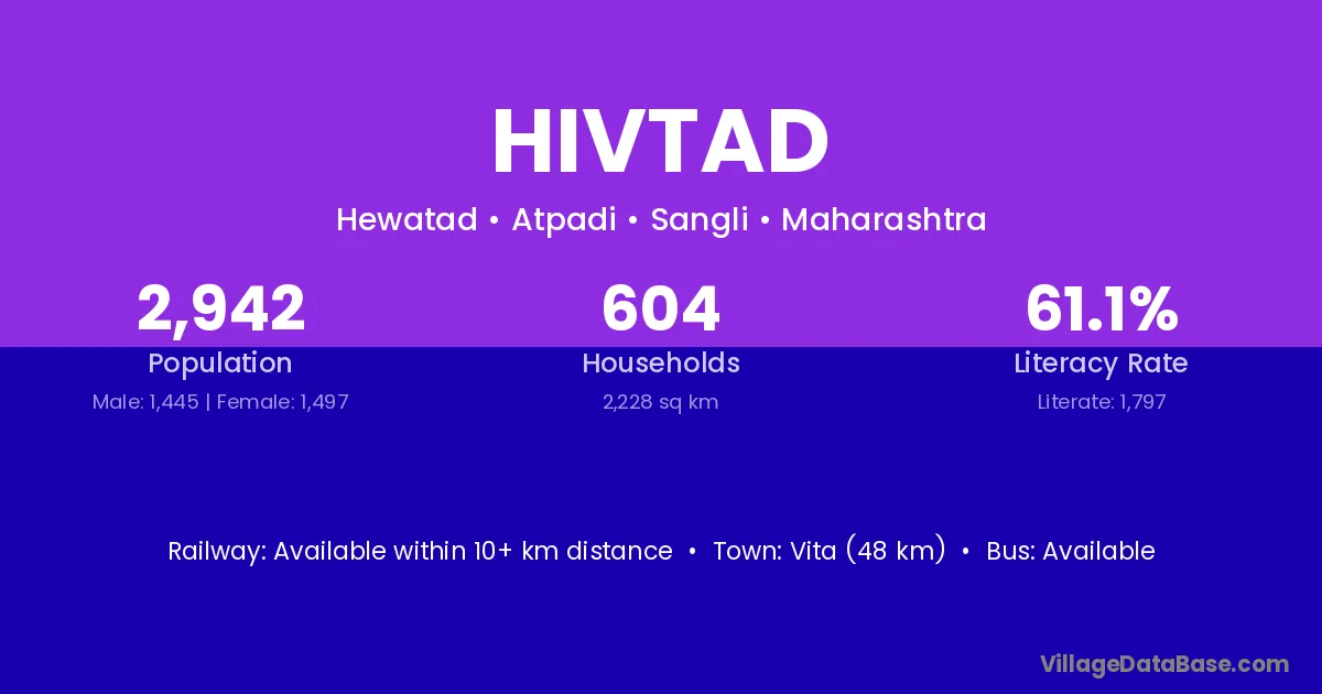 Vita (48 km) is the nearest town to Hivtad village for major economic activities and is located approximately 48 km away.