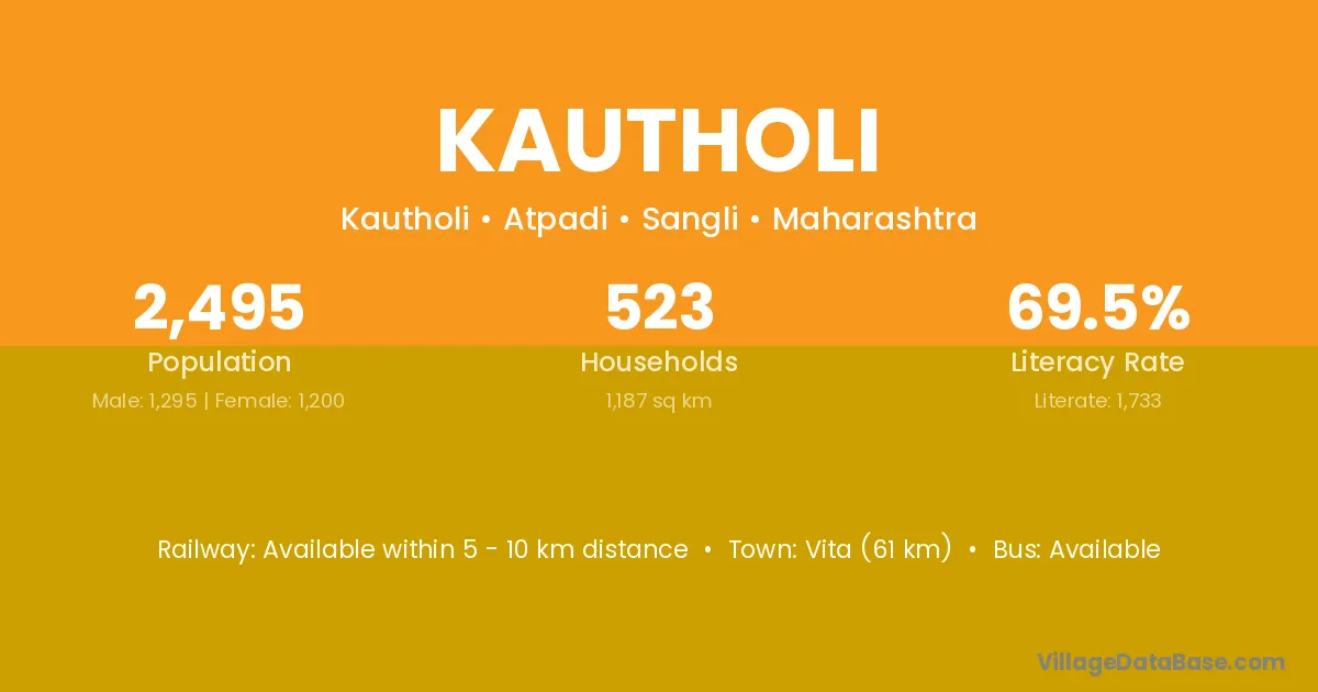 Vita (61 km) is the nearest town to Kautholi village for major economic activities and is located approximately 61 km away.