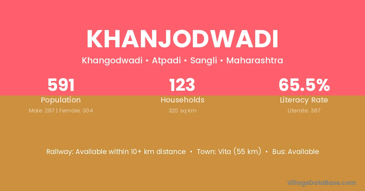 Vita (55 km) is the nearest town to Khanjodwadi village for major economic activities and is located approximately 55 km away.