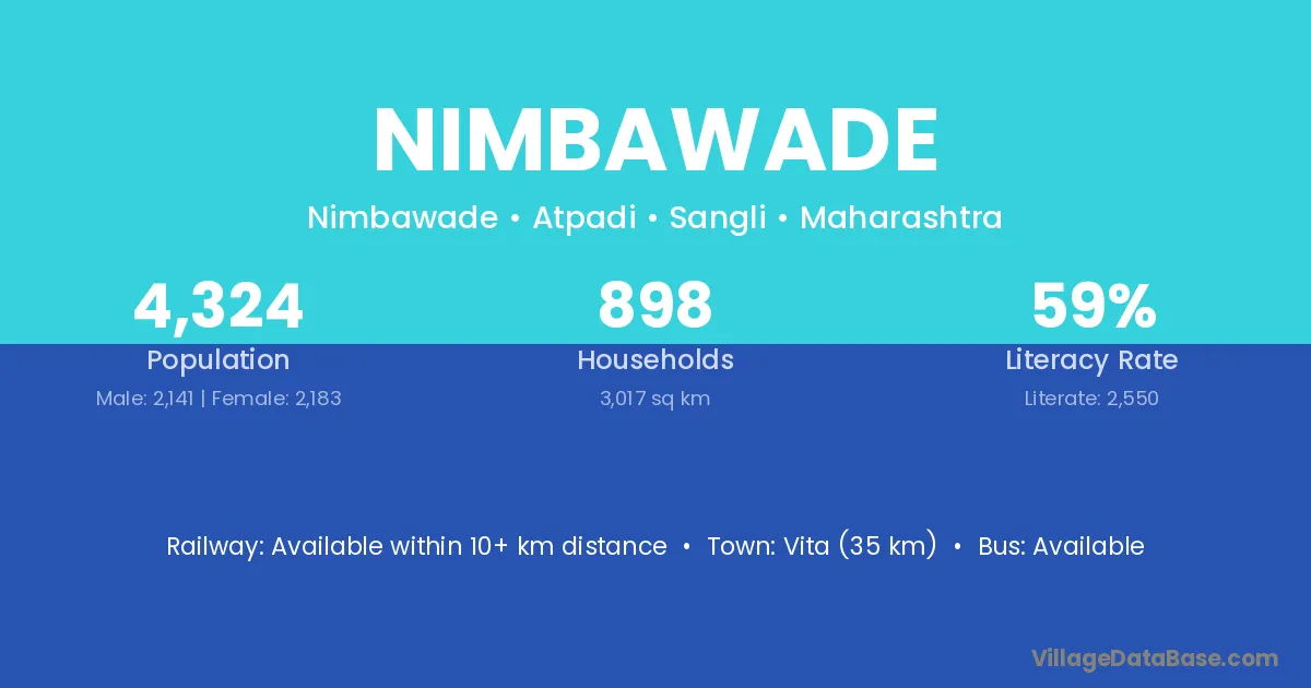 Vita (35 km) is the nearest town to Nimbawade village for major economic activities and is located approximately 35 km away.
