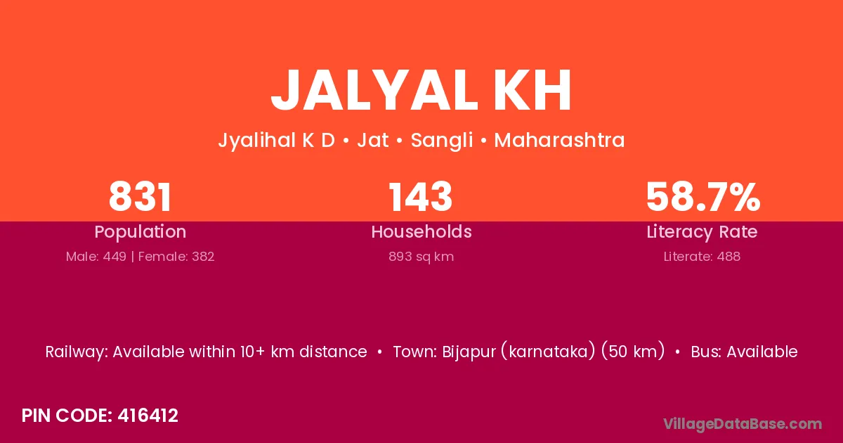 Bijapur (karnataka) (50 km) is the nearest town to Jalyal Kh village for major economic activities and is located approximately 50 km away.