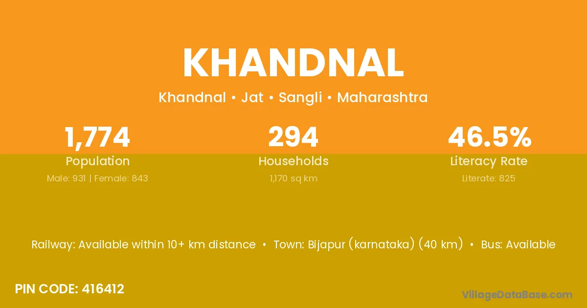 Bijapur (karnataka) (40 km) is the nearest town to Khandnal village for major economic activities and is located approximately 40 km away.
