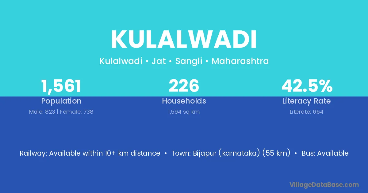 Kulalwadi village has a total population of 1,561 people, of which 823 are males and 738 are females.
