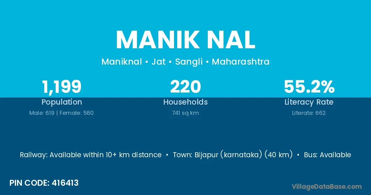 Bijapur (karnataka) (40 km) is the nearest town to Manik Nal village for major economic activities and is located approximately 40 km away.