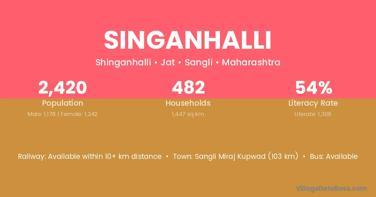 Singanhalli village has a total population of 2,420 people, of which 1,178 are males and 1,242 are females.