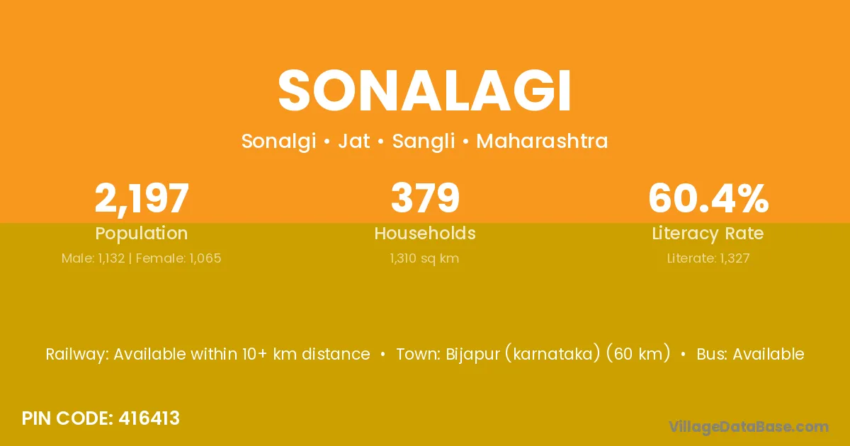 Bijapur (karnataka) (60 km) is the nearest town to Sonalagi village for major economic activities and is located approximately 60 km away.