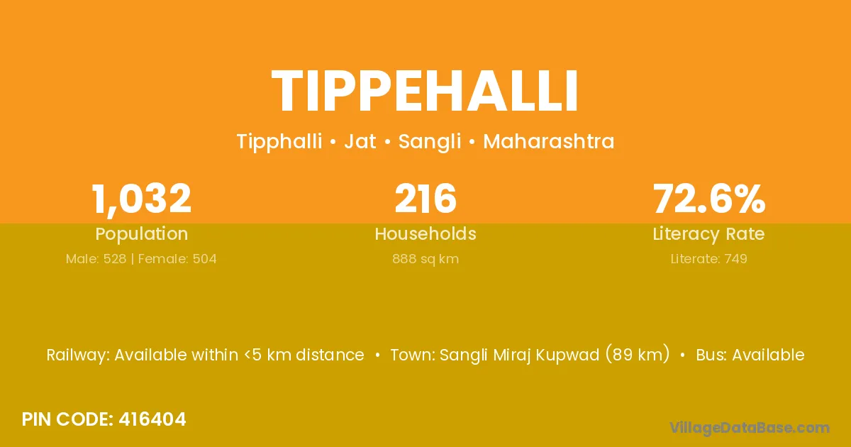 According to Census 2011 information, the village code of Tippehalli village is 416404.