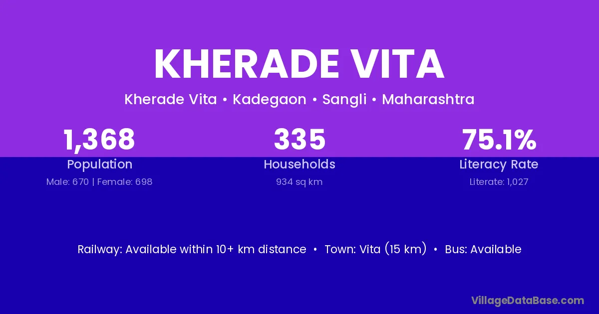 Vita (15 km) is the nearest town to Kherade Vita village for major economic activities and is located approximately 15 km away.