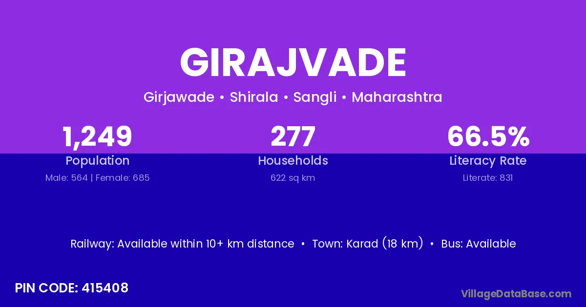 Karad (18 km) is the nearest town to Girajvade village for major economic activities and is located approximately 18 km away.