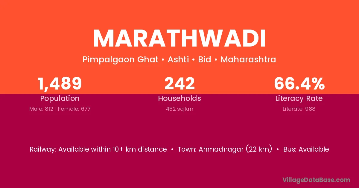 Karad (53 km) is the nearest town to Marathwadi village for major economic activities and is located approximately 53 km away.