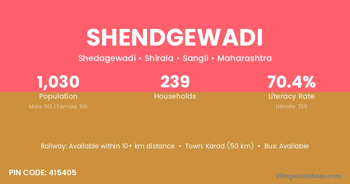 Shendgewadi village has a total population of 1,030 people, of which 512 are males and 518 are females.