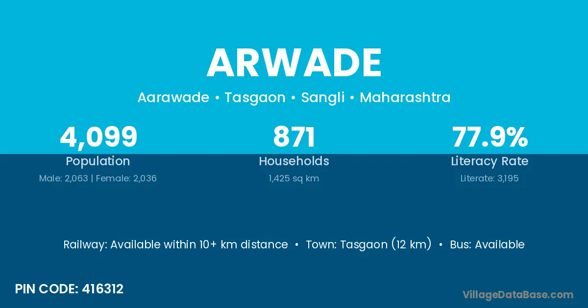 Tasgaon (12 km) is the nearest town to Arwade village for major economic activities and is located approximately 12 km away.