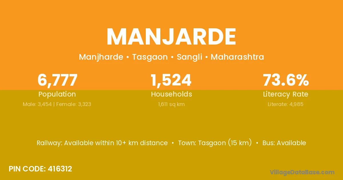 Tasgaon (15 km) is the nearest town to Manjarde village for major economic activities and is located approximately 15 km away.