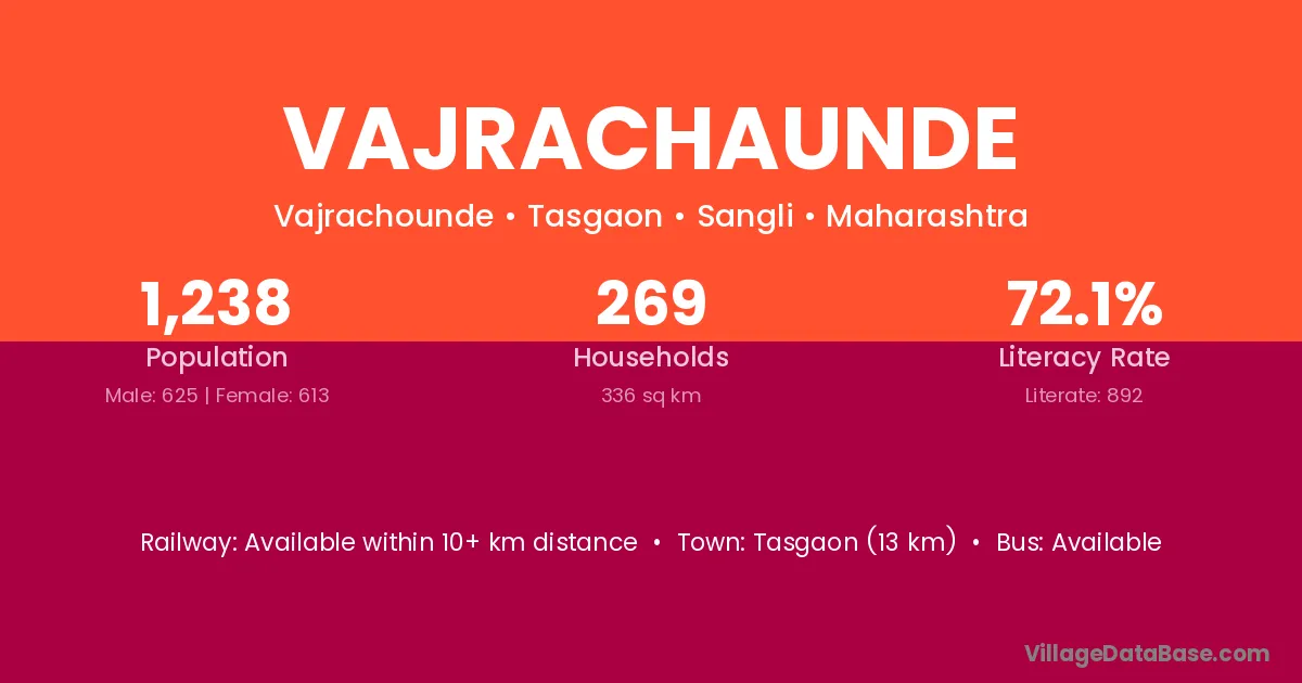 Tasgaon (13 km) is the nearest town to Vajrachaunde village for major economic activities and is located approximately 13 km away.