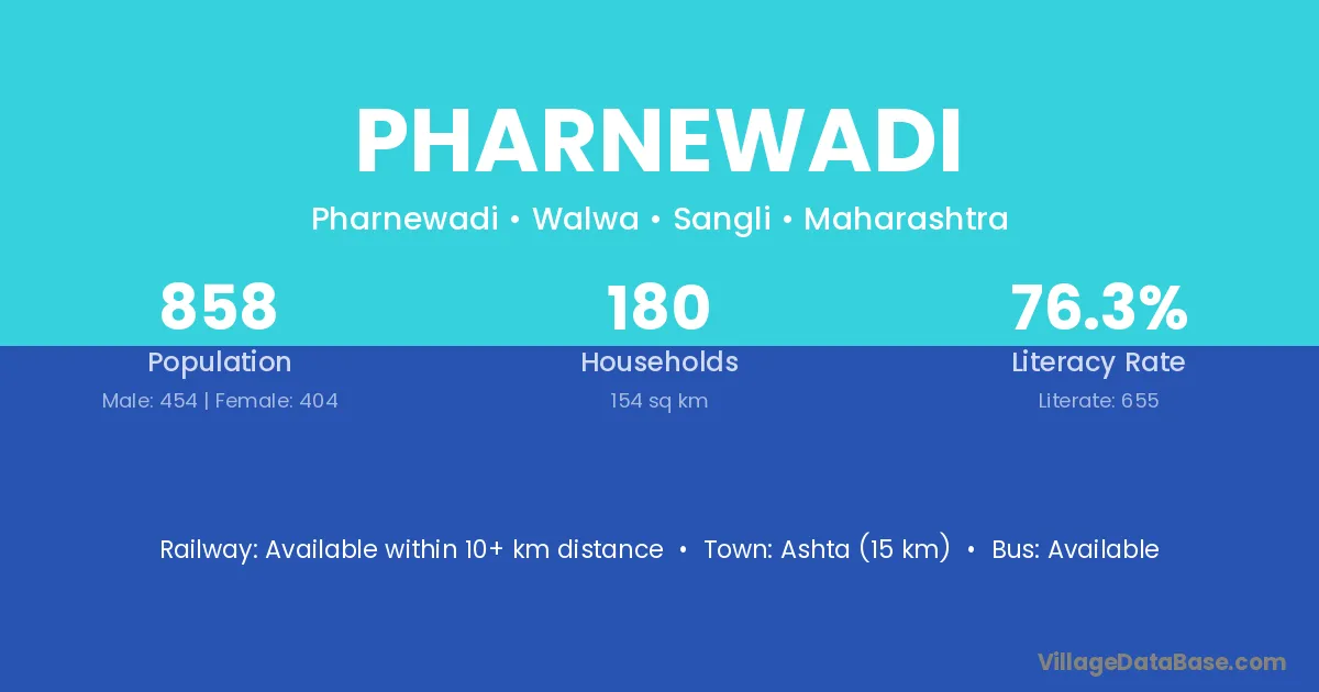 Ashta (15 km) is the nearest town to Pharnewadi village for major economic activities and is located approximately 15 km away.