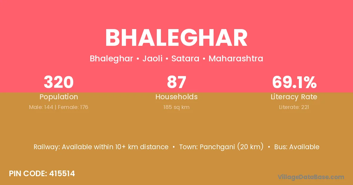 Panchgani (20 km) is the nearest town to Bhaleghar village for major economic activities and is located approximately 20 km away.