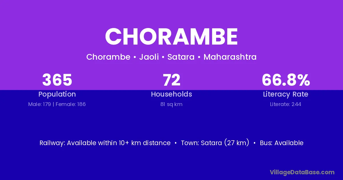 Satara (27 km) is the nearest town to Chorambe village for major economic activities and is located approximately 27 km away.