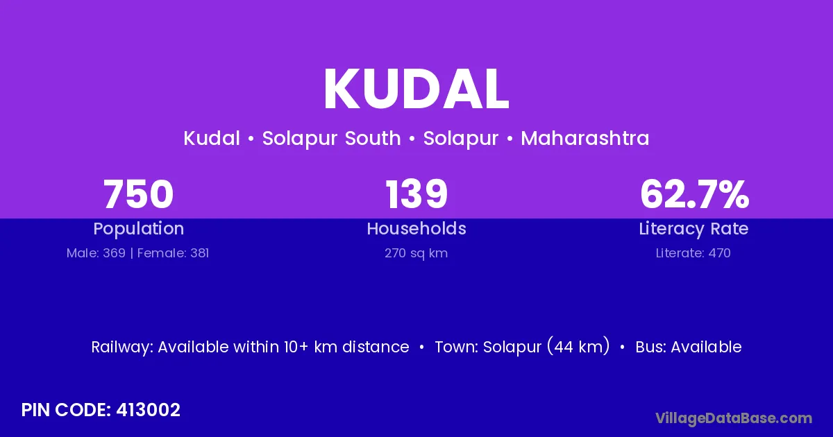 Satara (30 km) is the nearest town to Kudal village for major economic activities and is located approximately 30 km away.
