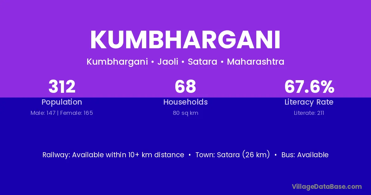 Satara (26 km) is the nearest town to Kumbhargani village for major economic activities and is located approximately 26 km away.