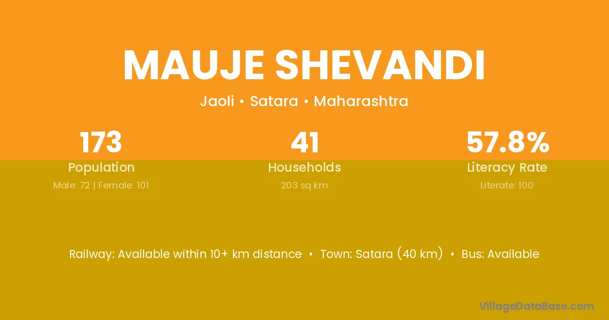 Satara (40 km) is the nearest town to Mauje Shevandi village for major economic activities and is located approximately 40 km away.