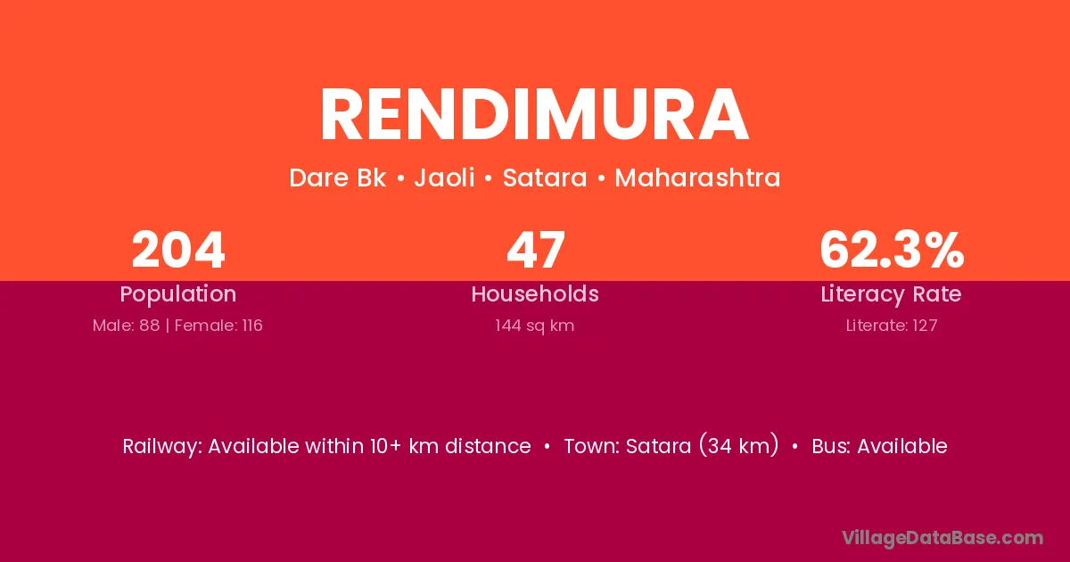 Satara (34 km) is the nearest town to Rendimura village for major economic activities and is located approximately 34 km away.