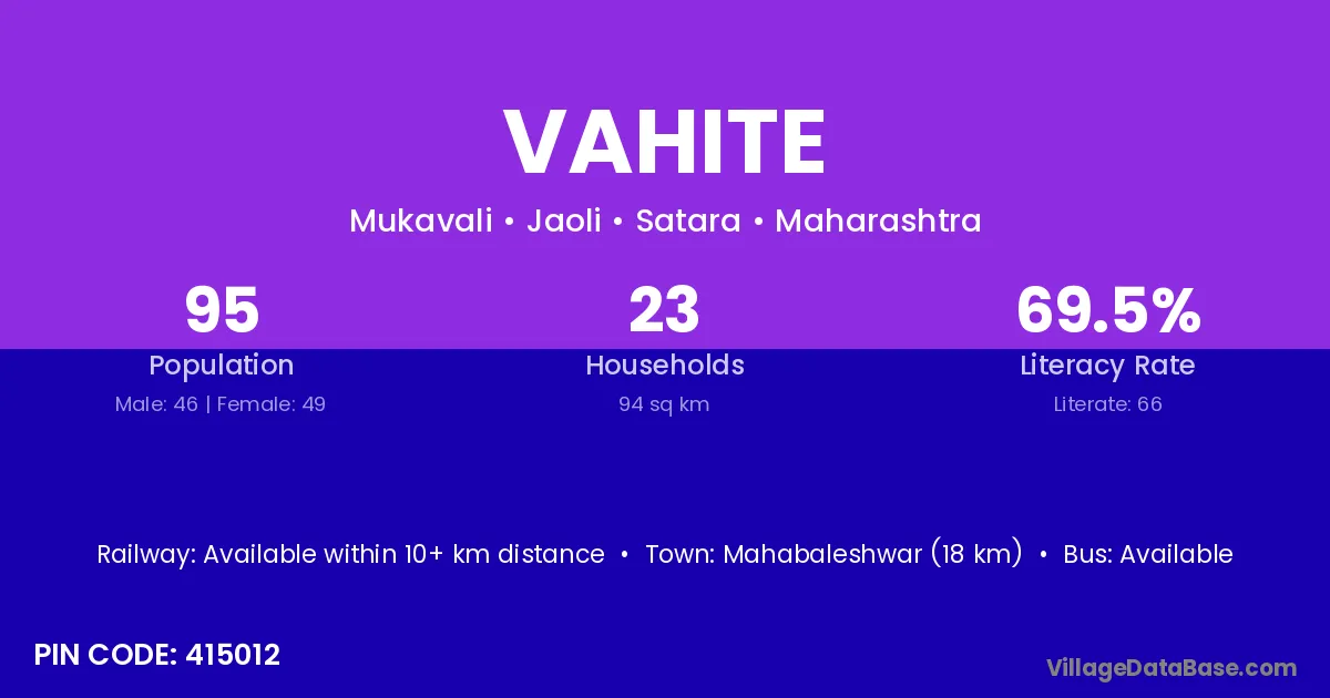 Mahabaleshwar (18 km) is the nearest town to Vahite village for major economic activities and is located approximately 18 km away.