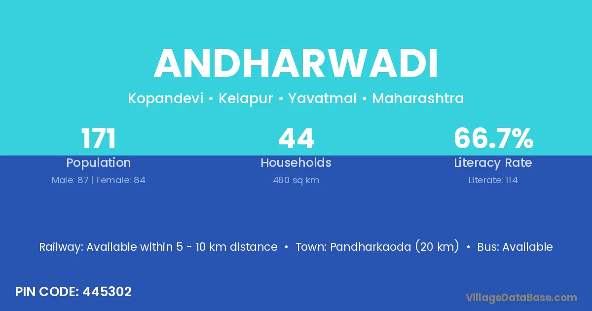 Karad (18 km) is the nearest town to Andharwadi village for major economic activities and is located approximately 18 km away.