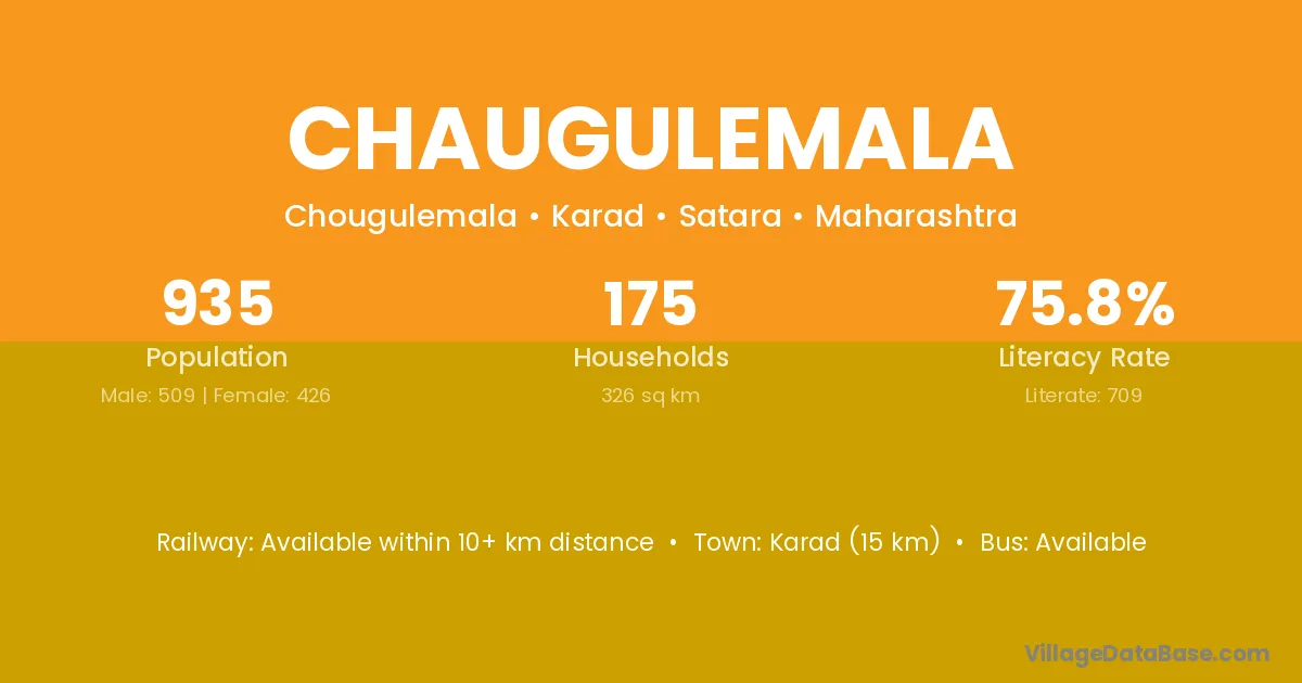 Karad (15 km) is the nearest town to Chaugulemala village for major economic activities and is located approximately 15 km away.