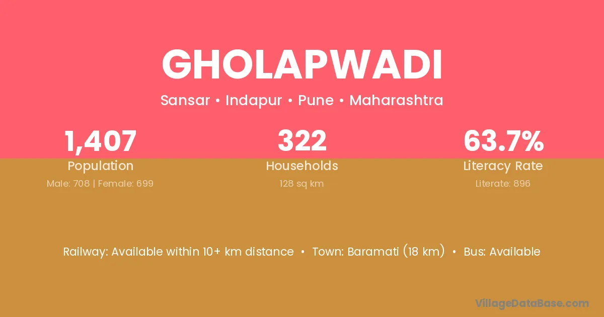 Karad (25 km) is the nearest town to Gholapwadi village for major economic activities and is located approximately 25 km away.
