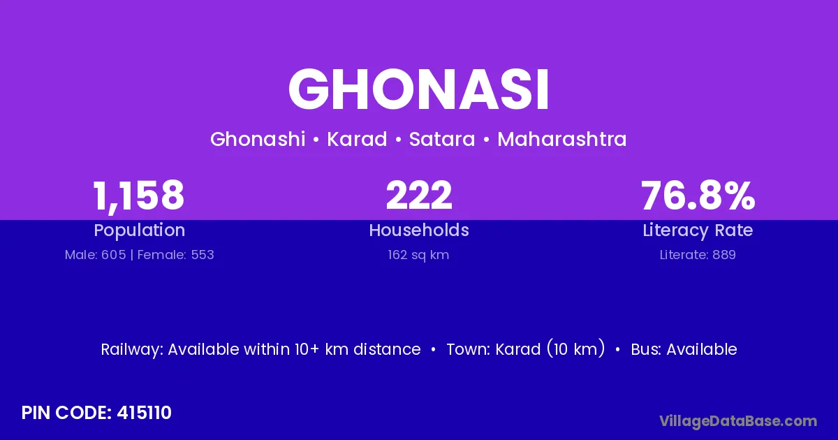 Karad (10 km) is the nearest town to Ghonasi village for major economic activities and is located approximately 10 km away.