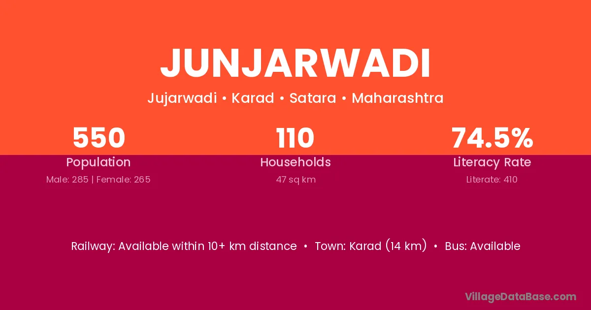 Junjarwadi village has a total population of 550 people, of which 285 are males and 265 are females.