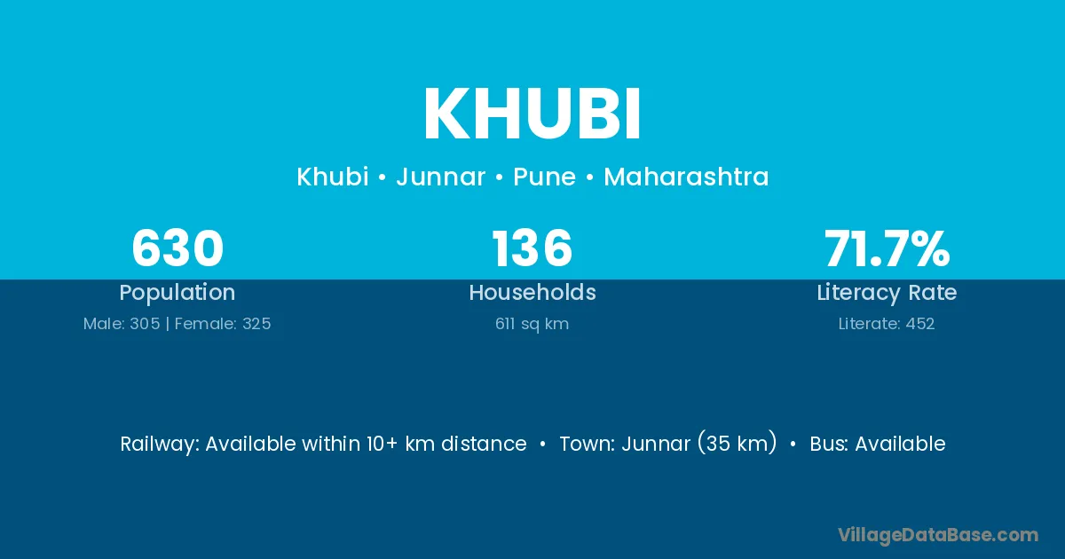 Karad (20 km) is the nearest town to Khubi village for major economic activities and is located approximately 20 km away.