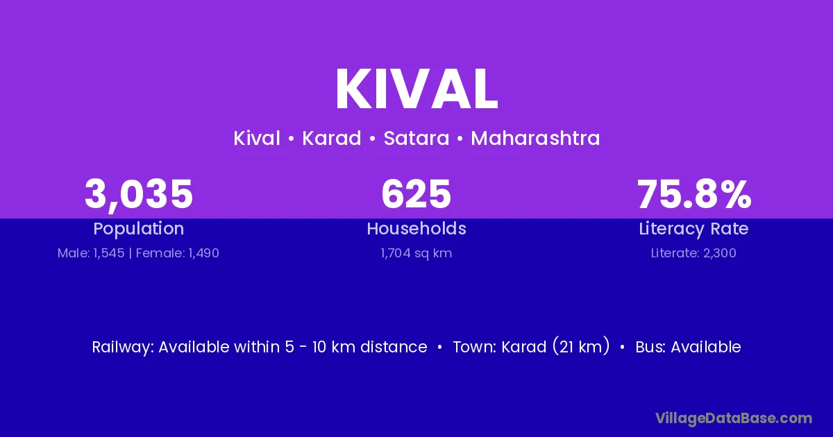 Karad (21 km) is the nearest town to Kival village for major economic activities and is located approximately 21 km away.