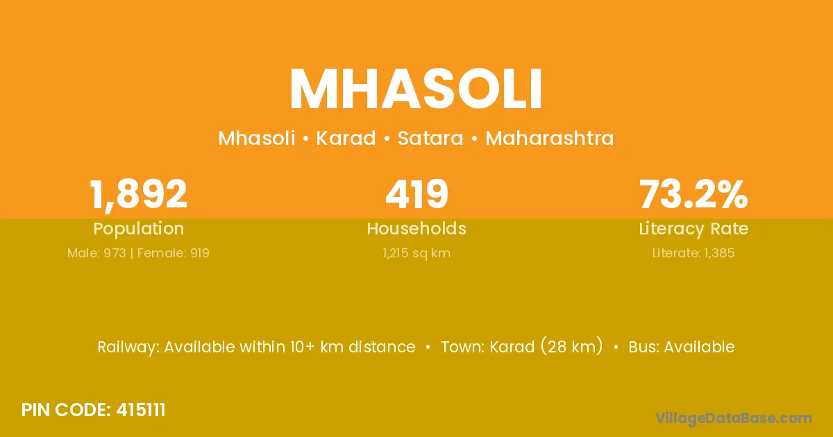 Karad (28 km) is the nearest town to Mhasoli village for major economic activities and is located approximately 28 km away.